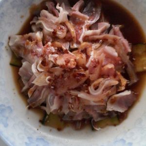 猪耳朵晾冷切片,一定要晾泠,容易成形。