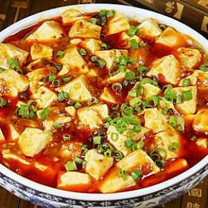 中火炒辣酱出香味,加入辣椒面、豆豉、糖,炒出红油后,加肉汤(或水),倒入豆腐烧3分钟,加酱油,水淀粉勾芡;