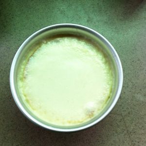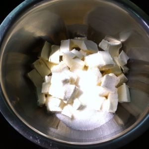 奶油奶酪切小块 加60g白糖 隔水加热 化成膏状