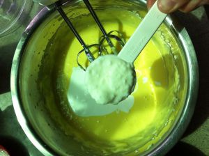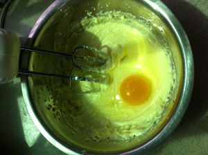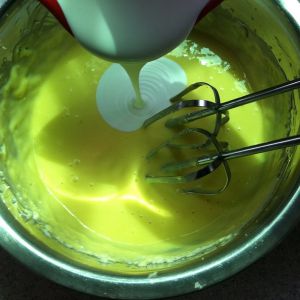 分两次加入鸡蛋 我是没启动打蛋器 直接搅匀的