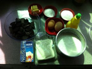 先准备好材料 需用6寸活底蛋糕模 那200g酸奶油不用准备 我写多了 其实就是用200g淡奶油自己做出来的