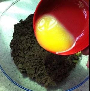将35g黄油 隔水溶成液体后 倒入饼干粉末