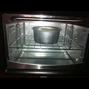 时间到后 将底层加水的烤盘拿出后 再干烤30分钟