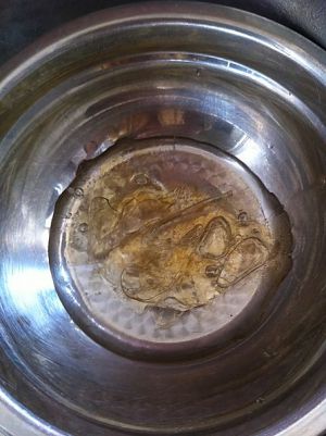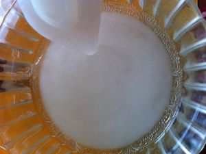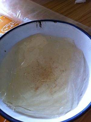 50克水饴,120ml水,150克糖放入小碗中,用微波炉高火加热4-5次,每次1分钟