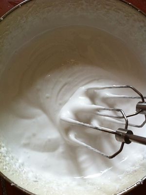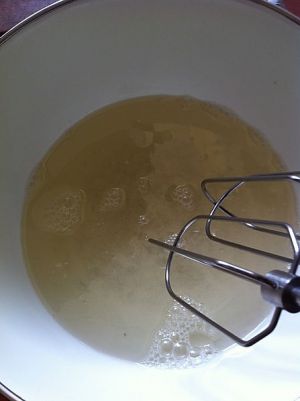 把泡软沥干的吉利丁片放入水饴,隔热水加热。直到吉利丁片融化,与水饴混合均匀