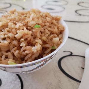 热锅冷油,下葱花爆香,放入米饭,简单翻炒后倒入调好的酱油,翻炒均匀,出锅。