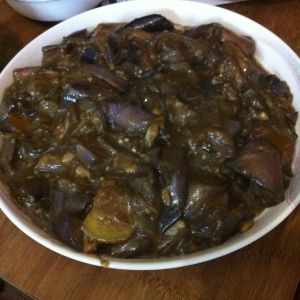 起油锅、下蒜末姜片,茄子控干水放入翻炒到出油。加适量水、老抽、盐、糖,煮到快干加小碗水淀粉勾芡收汁出锅。