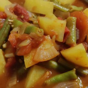 加入土豆和豆角,炖到差不多加入耗油生抽盐醋调味