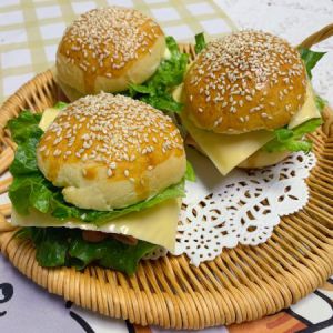 面包胚材料放入面包机中,揉面1个半小时,放温暖处发酵2小时,拿出来分份,大概50g~60g1份