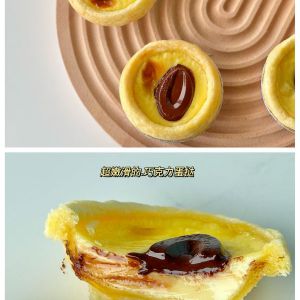 -蛋挞皮放到炸篮中,把蛋挞液倒进蛋挞皮里