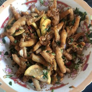 把鸡爪的指甲剪掉 用水泡十分钟后捞出备用。锅内盛水 直接冷水下入鸡爪 放入一勺料酒 姜片 葱花