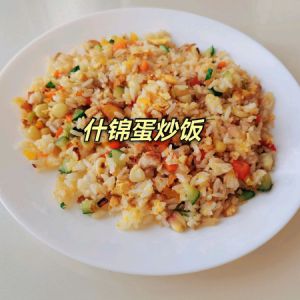 准备好这些食材,两个鸡蛋打散,黄瓜、胡萝卜、彩椒、鸡胸肉切丁。煮好的玉米剥成粒。
