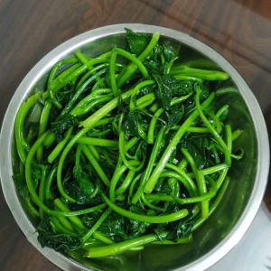 虾酱地瓜叶和煎鸡蛋做法步骤