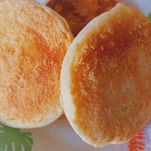 平底锅中倒入一层薄油,馒头片粘满奶液,后放入平底锅中;