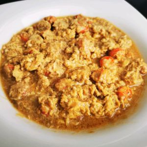 重点来了,汤汁煮开加入打匀的鸡蛋搅拌入锅,翻炒一下就是滑蛋,再多10秒