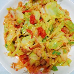 加入包菜炒至软,加一勺生抽,一勺耗油,少许盐,少许黑胡椒炒均匀就可以出锅了。