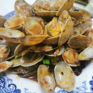 倒入花蛤,在加入少许料酒、2勺生抽、1勺白糖、1勺水淀粉 盖上锅盖焖1分钟左右花蛤开口即可