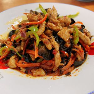 准备好 胡萝卜 青椒 木耳切细备用 肉丝切好备用