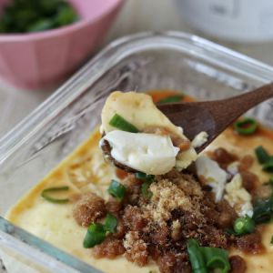 取出撒上喜欢的调料,我放了生抽、香油和肉松