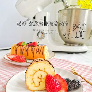 ,上面可以打发奶油,我是挤上巧克力酱放了两个草莓装饰,美美哒的蛋糕卷就做好了!