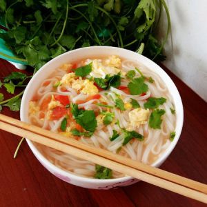 淋入蛋液煮至凝固,加入盐和鸡精调味。