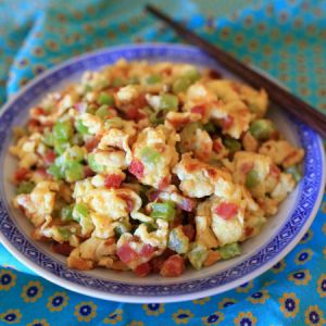 放入苦瓜丁,翻炒,害怕苦味的可以事先将苦瓜丁拿一点点盐,腌一下。如果腌过,鸡蛋液就要相应少放盐。