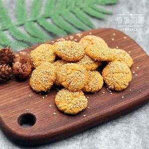 多用锅预热,放入蛋黄芝麻酥,烤12-20分钟即可(根据饼干的厚度大小调整烘烤时间);