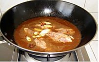 然后再下藕块,烧10分钟,开盖收汁即可。
