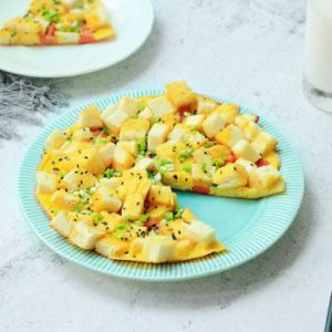 慢慢煎至蛋液全部凝固,期间可以滑动蛋饼均匀加热