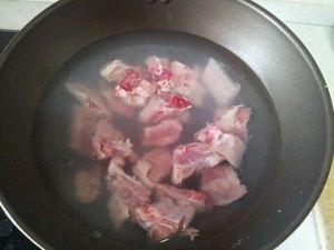 将生排骨用水大火煮开,去血沫,而后捞出备用,将葱姜蒜备好