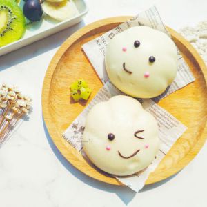 蒸好以后我用巧克力笔给小云朵画了红脸蛋。