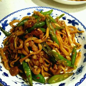准备食材:四季豆改刀切斜条,五花肉切粒或片,大蒜切末,大葱切末。将适量老抽,一勺耗油,一小勺糖,一小勺盐,50g橄榄油放到一个大碗中,加入200毫升热水备用。将面条放在蒸笼上蒸20分钟。