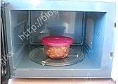 鸡腿盒盖上盖子,放到微波炉中,中火先烧制3分钟。