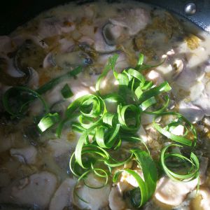 放入鸡精,没有香葱,大葱叶切丝撒入。关火,装盘。