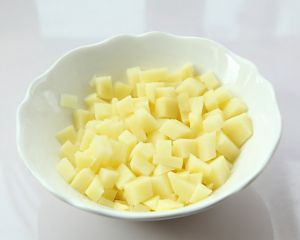 土豆去皮洗净切成丁,流水冲去外表淀粉。