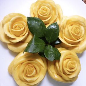 把清洗干净的南瓜切薄片后蒸熟,放凉后待用。