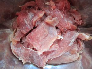 将精肉切成薄片备用;