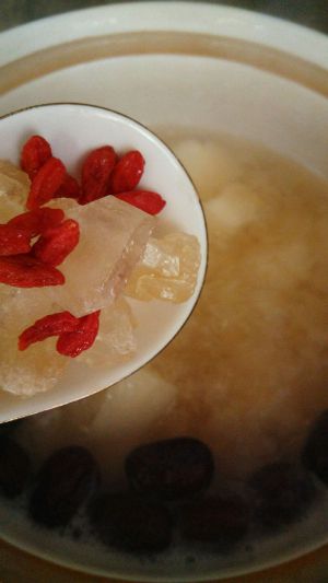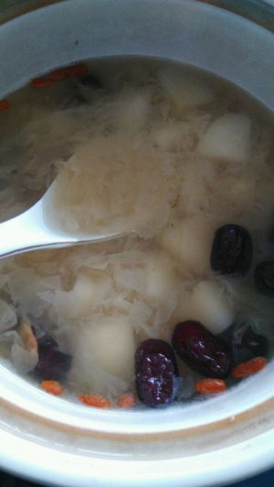 银耳放入砂锅内,加水,大火煮开后转小火煮半个小时(水要多,中间记得搅拌几次,以防糊锅)