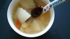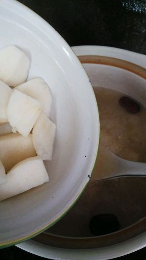 莲子酥烂后放入梨煮10分钟