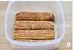将沾好酒的手指饼干整齐的码放在模具底部;