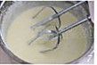 一边倒入蛋黄,一边不停用打蛋器搅拌,直至搅拌至温度变凉,然后放入冰箱冷藏备用;