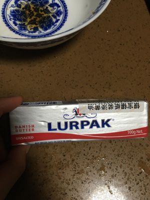 玉米洗净,晾干待用。黄油我用的淡黄油~