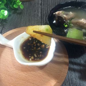 我喜欢把冬瓜蘸取调味料吃,取一碟子放上蒜末与香油,浇上鲜酱油,吃着蒜泥冬瓜喝着排骨冬瓜汤,别提有多爽了^_^