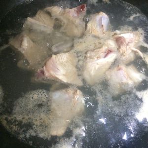 把排骨冷水下锅,烧开后煮五分钟,捞出温水冲洗干净。