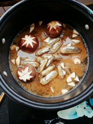 加入海蛏和香菇,烧开。