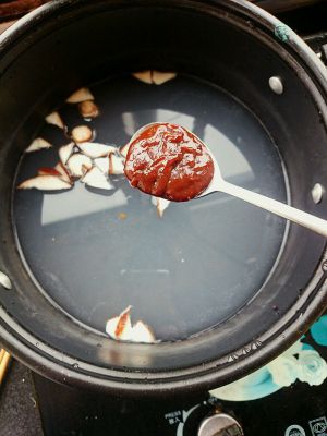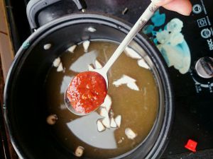 放入一勺蒜味辣酱。