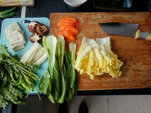 把所有食材洗好切好,这里我比较喜欢整根的,所以青菜类基本都没切。