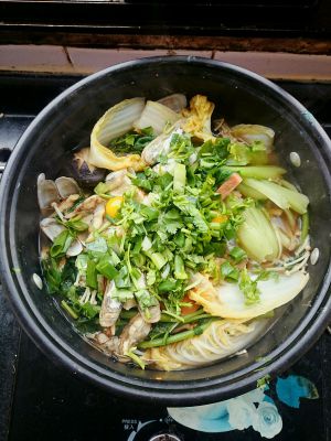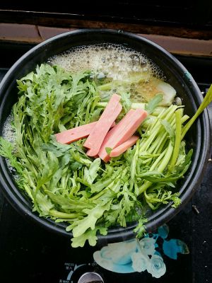 加入油菜和茼蒿,顺便加了点方腿条。