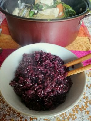 应该更配白米饭,但是减肥嘛…好像黑米饭更好点。。。