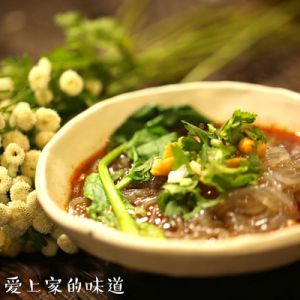 放入适量煮粉丝的汤,搅拌均匀后将煮熟的粉放入碗中